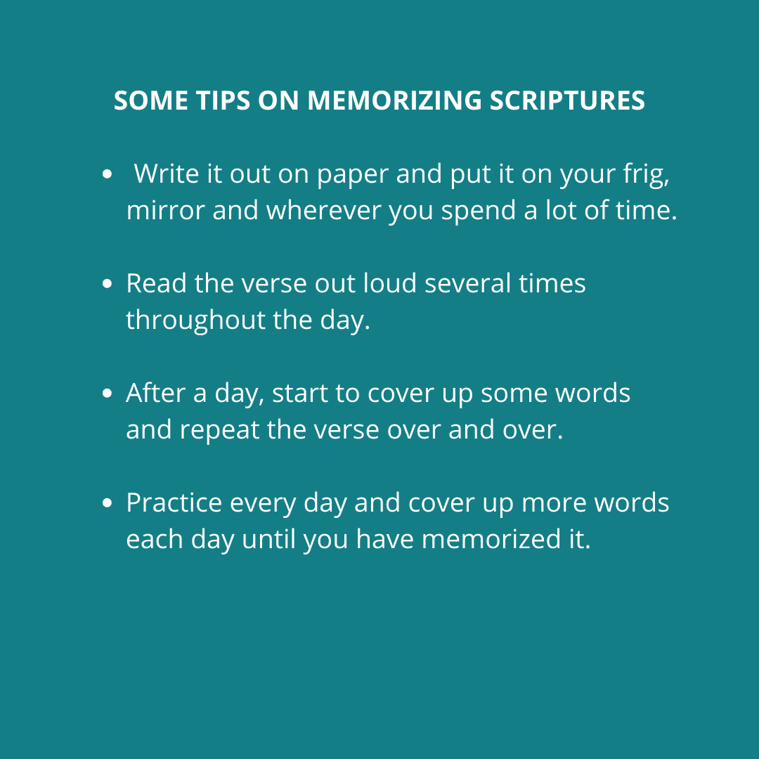 I”m using the New Living Translation for this challenge, but feel free to memorize these scriptures in a Bible Translation that you are familiar with.