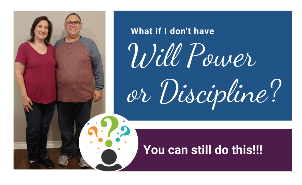 “That takes great discipline and will power to lose that much weight.” We hear that a lot when people find out how much weight we have lost. The discipline and will power comments never seem to settle well with me. It’ not that they are wrong in saying it, but sometimes I feel that the message being sent is that you have to have Great Discipline and Will Power to lose weight. Those words are meant to be encouraging, I get that, but what about the person who feels that they don’t have any will power or discipline? Will that encourage them to try or just confirm that what they think is true and thus not even try to lose weight?